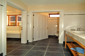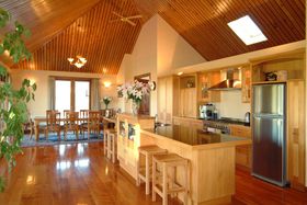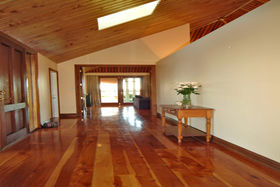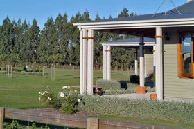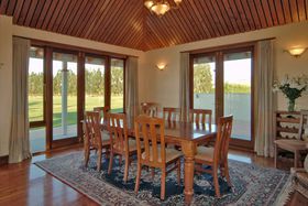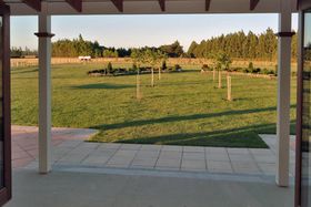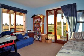 The 3 year old, 372m2, contemporary ranch style residence designed by Ray Hawthorne invites casual enjoyment & ensures country comfort for all the family. Macrocarpa ceilings and floors exude a natural glow wand warmth. The palatial proportions allow every family member the pleasure of their own special places. Central heating, gas fire, open fire & under floor heating ensure the whole house is warm.