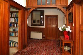 Library, TV Room - has built in book shelves, large log burner and built in wood cabinetry with lovely big wooden fire surround.
