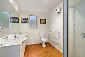 Double glazed, heatpump and sited well for the sun will keep everyone healthy over the winter months. Accommodation includes a master suite with walk-in-robe and ensuite, three double bedrooms with built-in robes.